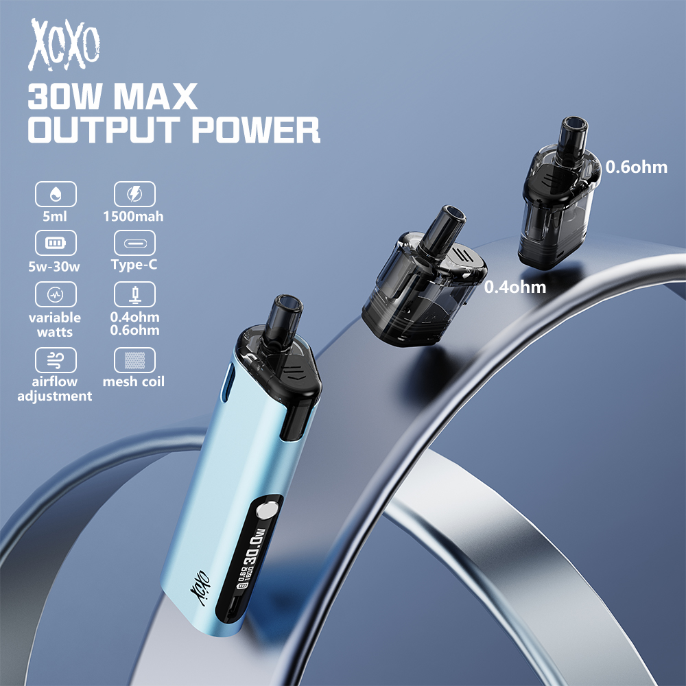 xoxo open pod device 30wattes with 1500mah power battert 4.5ml capacity